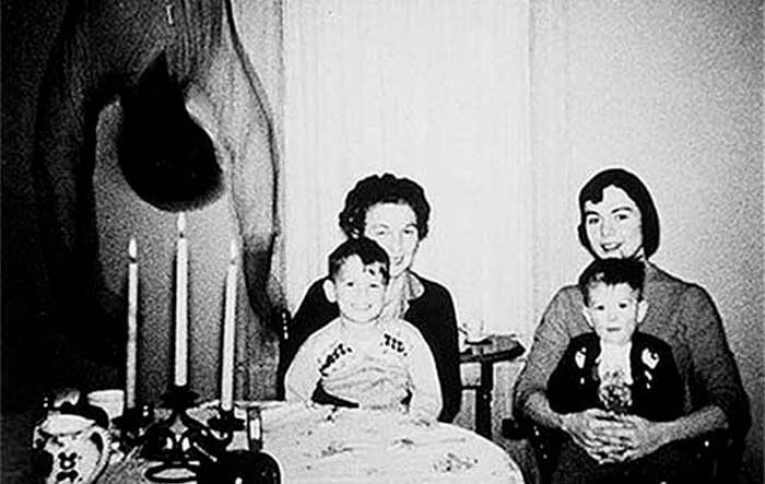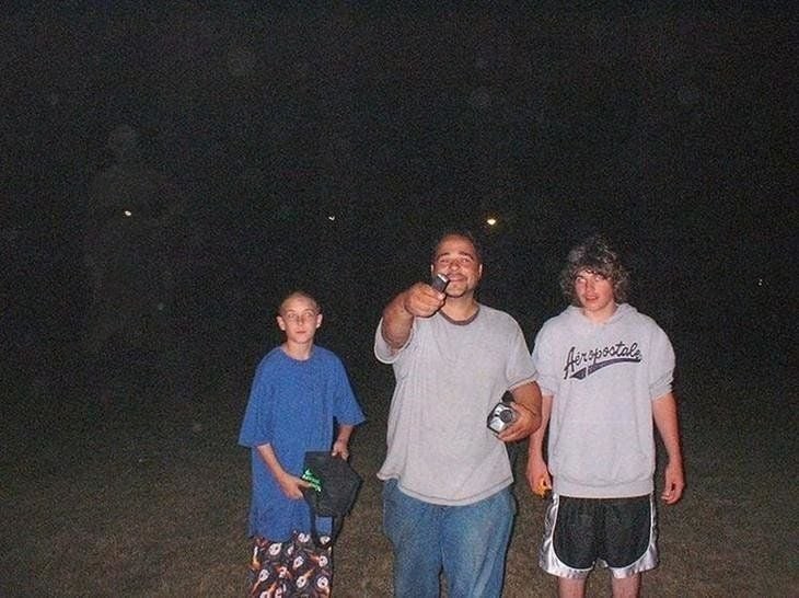 If you easily get scared, this photo might give you nightmares. Behind these three boys in the darkness, there are three hovering orbs and a large, mysterious figure on the left side. These people have no idea what lurks behind them, but it's probably better that way.