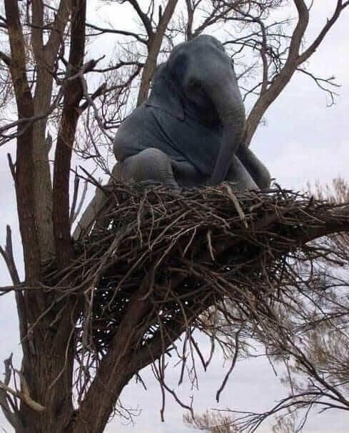 We have never seen an elephant climb anything, so it would be fascinating to find out how it got into that nest. Did a giant bird snatch it from the ground and place it there? We may never know how it ended up there, but we will also never forget that an elephant was in a bird's nest.