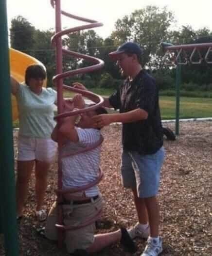 Who remembers being a child and playing on the jungle gym, contemplating climbing into the spiral ladder? We knew it wasn't a good idea, but still, we wondered what would happen. Now, we no longer have to wonder because this guy showed us.
